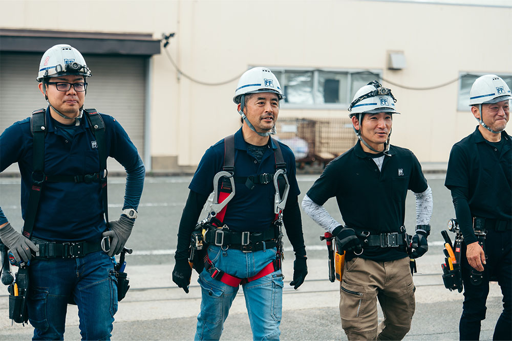 弊社ではお客さまにお喜びいただけることを追求し、技術面はもちろんのこと、安全面や挨拶・清潔感などのマナーまで、スタッフ各々がしっかりと考え取り組んでいます。